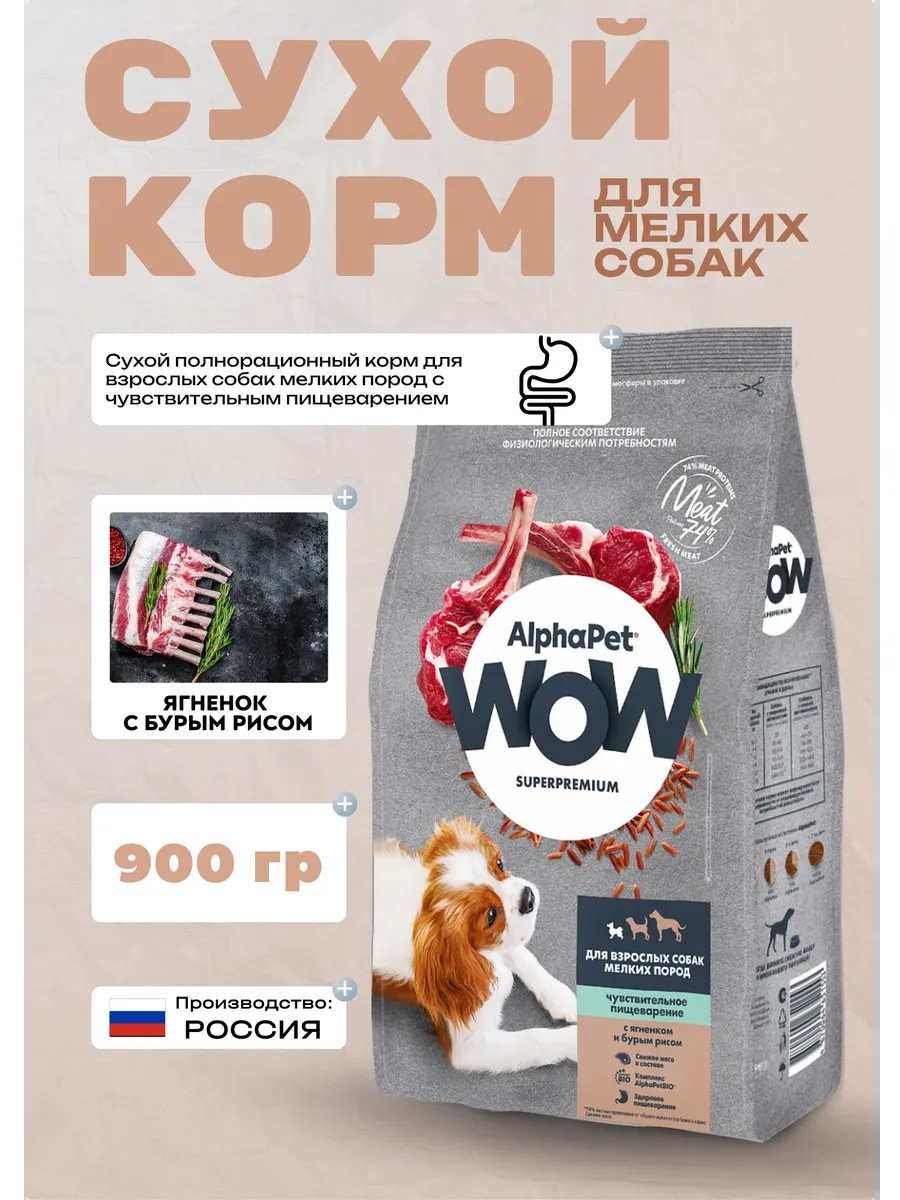 AlphaPet dry food for small breed dogs with sensitive digestion, based on lamb, is designed to provide complete and balanced nutrition.