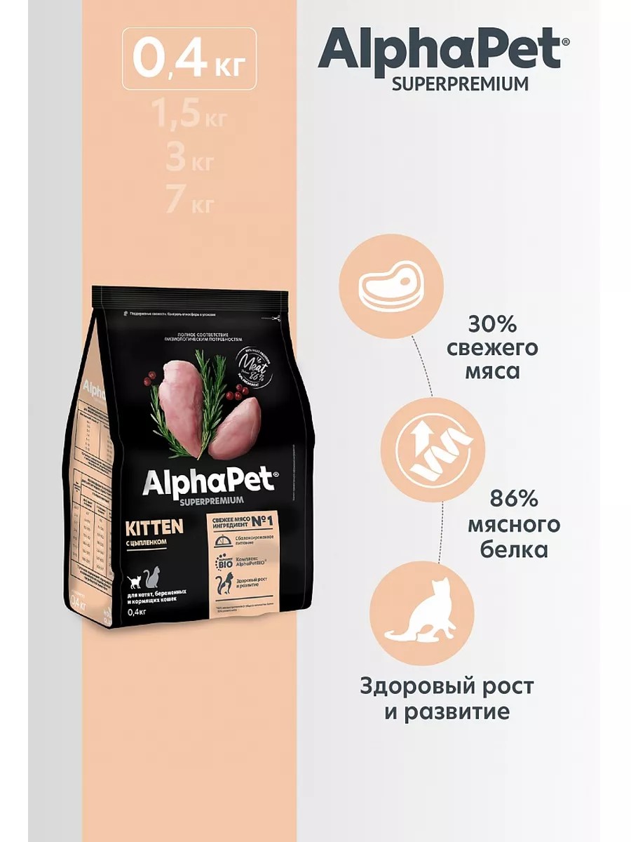 AlphaPet Сухой корм для котят беременных кошек цыпленок 400г