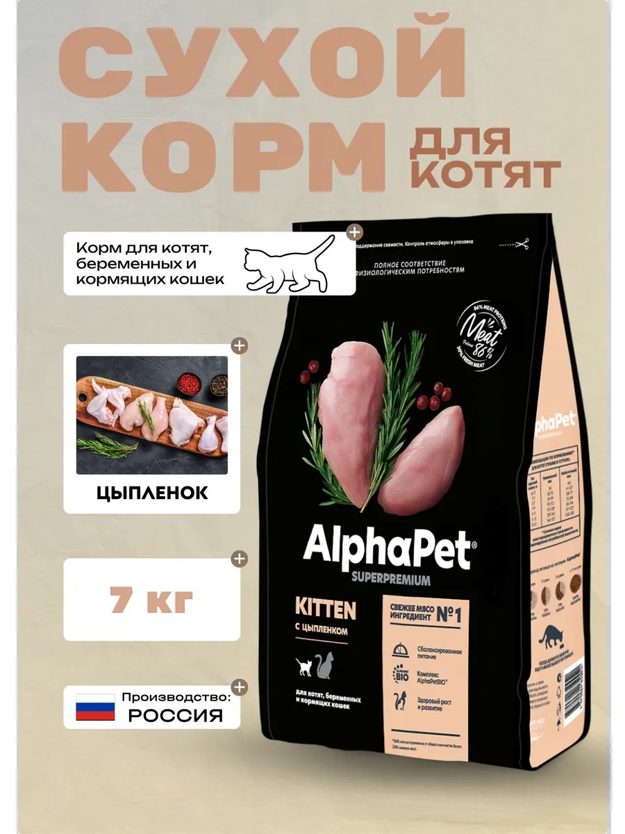 AlphaPet Сухой корм для котят с цыпленком 7 кг