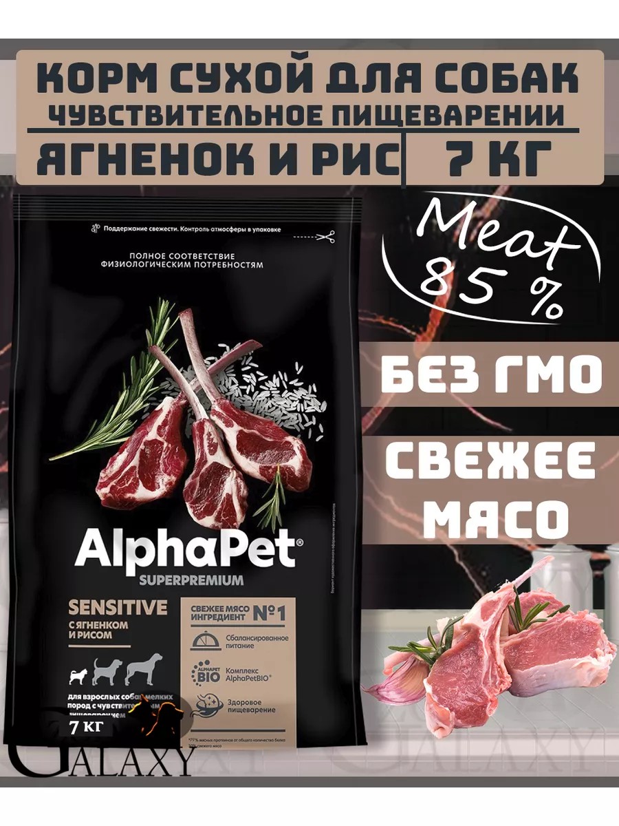 С ягненком и рисом для взрослых собак мелких пород с чувствительным пищеварениемAlphaPet Superpremium / Сухой полнорационный корм с ягненком и рисом для взрослых собак мелких пород с чувствительным пищеварениемИнгредиенты Состав80% мясного белка 30% свежего мясаОсобая форма и небольшой размер гранул специально подобраны для собак маленьких и карликовых пород Уникальный комплекс натуральных добавок AlphaPetBIO Высшая категория качества Holistiс (холистик) Не содержит ГМО, искусственных красителей и ароматизаторовИнгредиенты, пригодные в пищу человеку, уровня Human GradeБережная технология, сохраняющая вкусовые и питательные свойства свежего мясаНатуральные ингредиенты