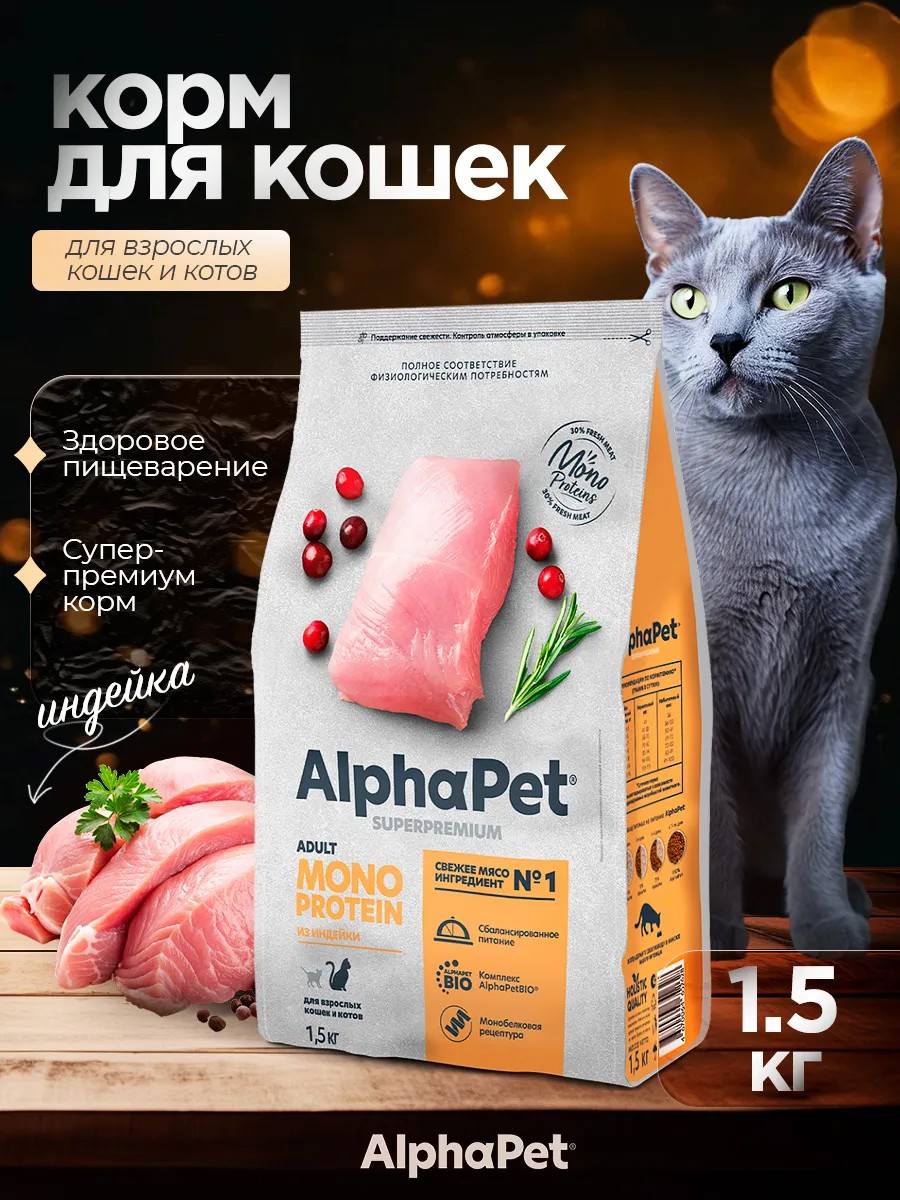 AlphaPet Сухой корм для кошек MONOProtein с индейкой 1.5 кг