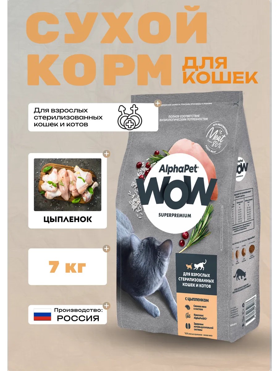 AlphaPet Сухой корм для стерил. кошек c цыпленком 7 кг