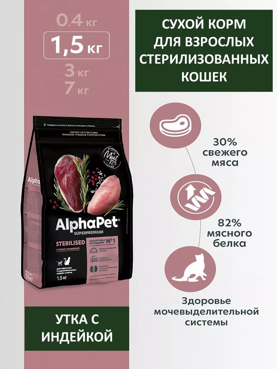 AlphaPet Сухой корм для стерилизованных кошек с уткой и индейкой