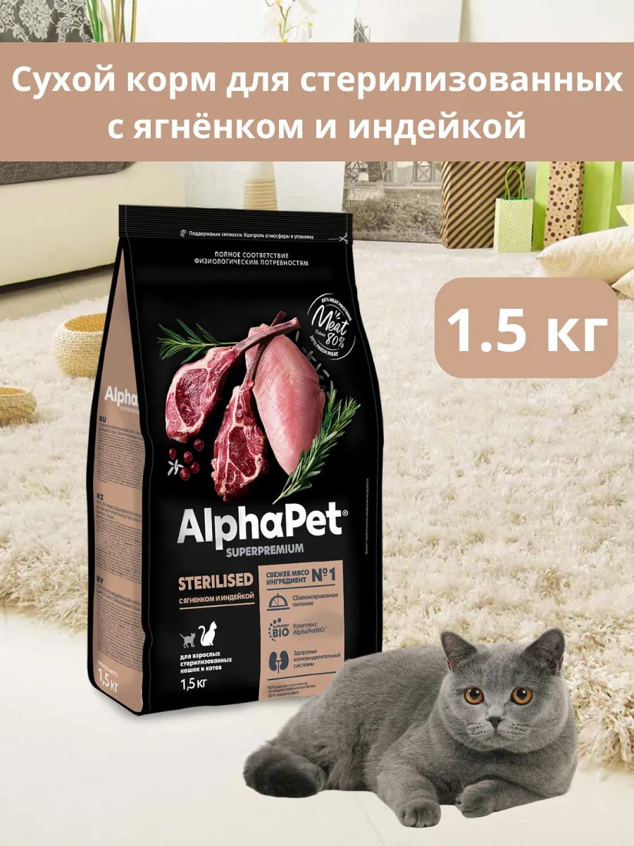 AlphaPet Сухой корм для стерилизованных кошек с ягнёнком и индейкой