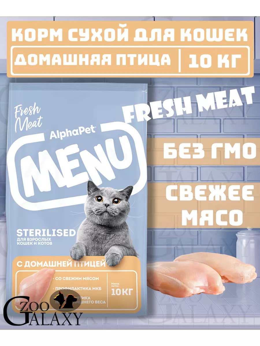 AlphaPet Сухой корм menu для стерилизованных кошек с птицей 10 кг