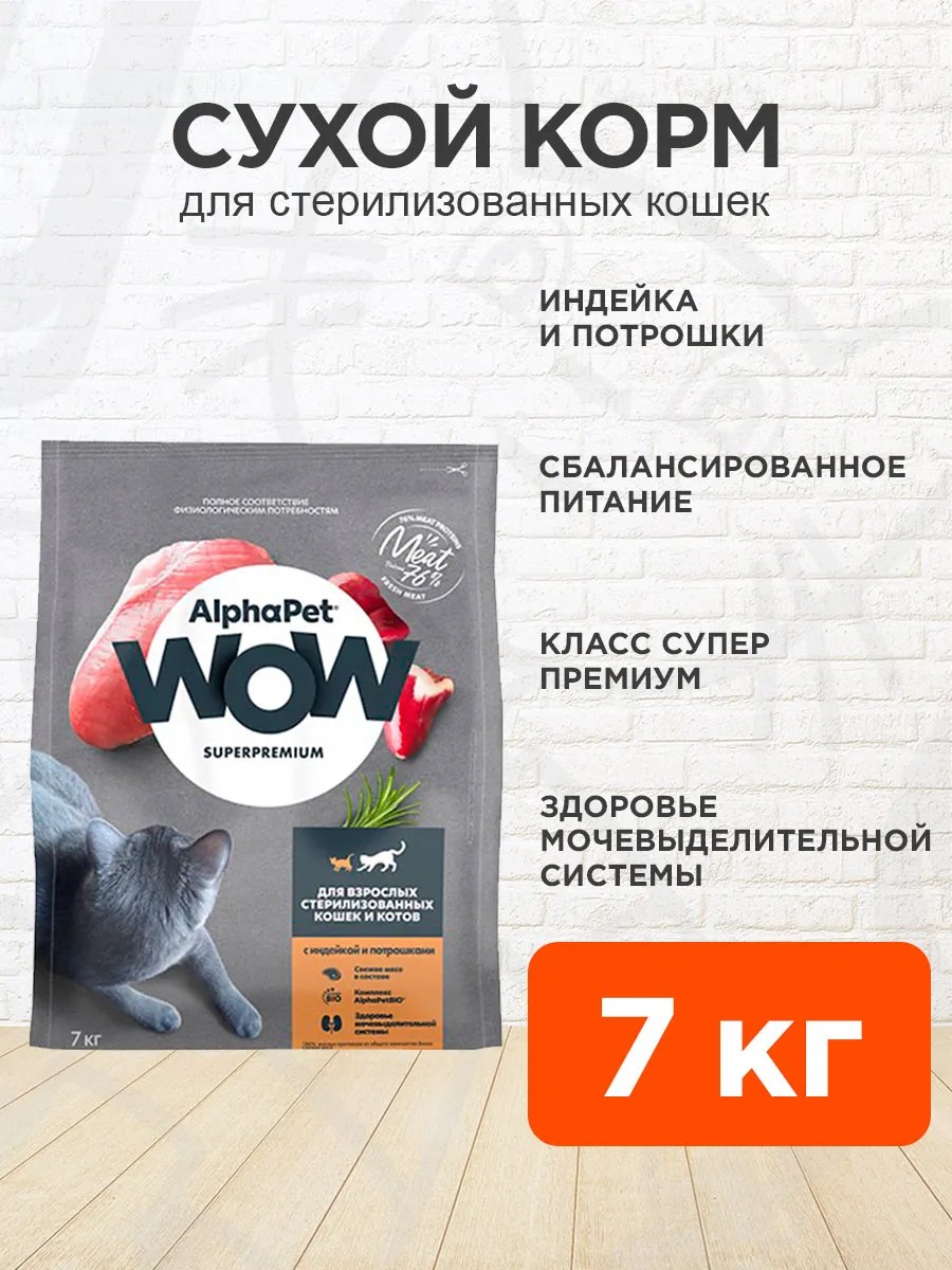 AlphaPet Корм сухой WOW для стерилизованных кошек индейка 7 кг
