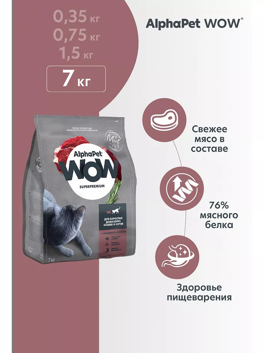 AlphaPet Корм для кошек и котов сухой Альфапет говядина печень 7кг