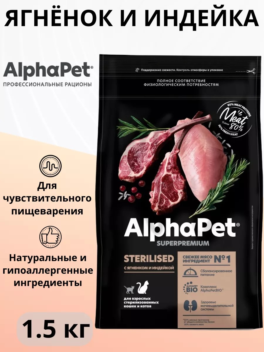 AlphaPet Корм для стерилизованных кошек, ягненок и индейка 1.5 кг