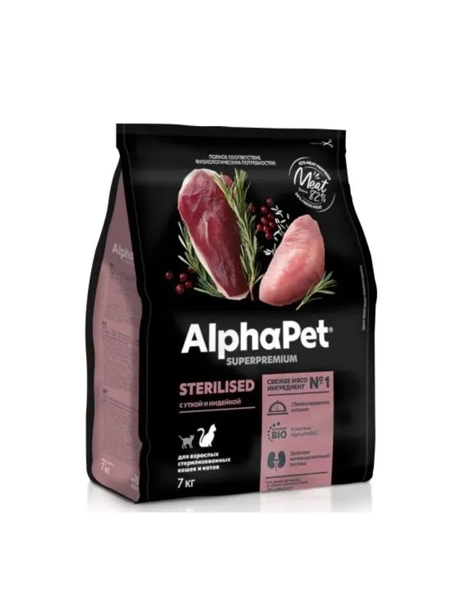 | Комплектация | Сухой корм AlphaPet для стерилизованных кошек и котов, с уткой и индейкой, 7 кг - 1 шт. |