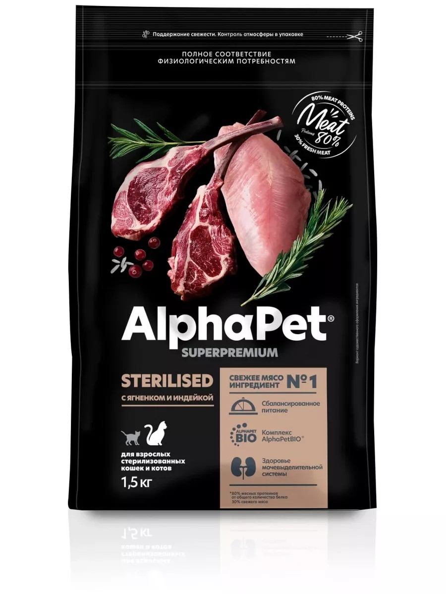 AlphaPet Корм с ягненком и индейкой для стерил кошек, 1,5 кг