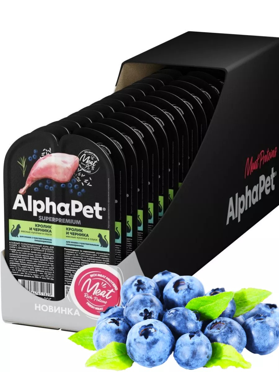 AlphaPet Для любых кошек, кролик и черника (15шт х 80гр)
