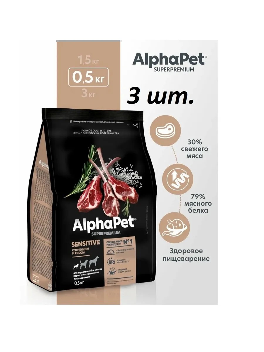 AlphaPet Для мини пород чувствительное пищеварение Ягненок 500г*3шт