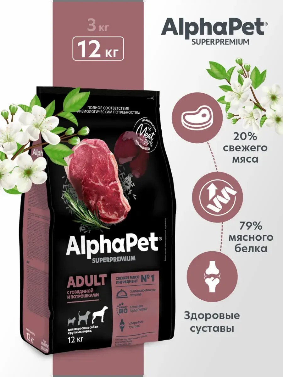 AlphaPet Сухой корм AlphaPet для взрослых собак макси с говядиной и потрошками 12 кг