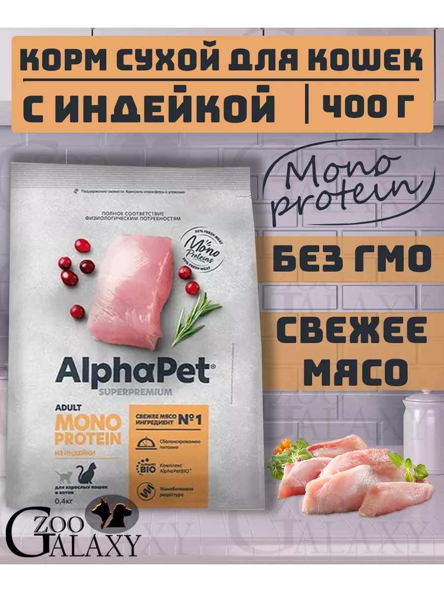 AlphaPet Корм для кошек Monoprotein индейка 400 г
