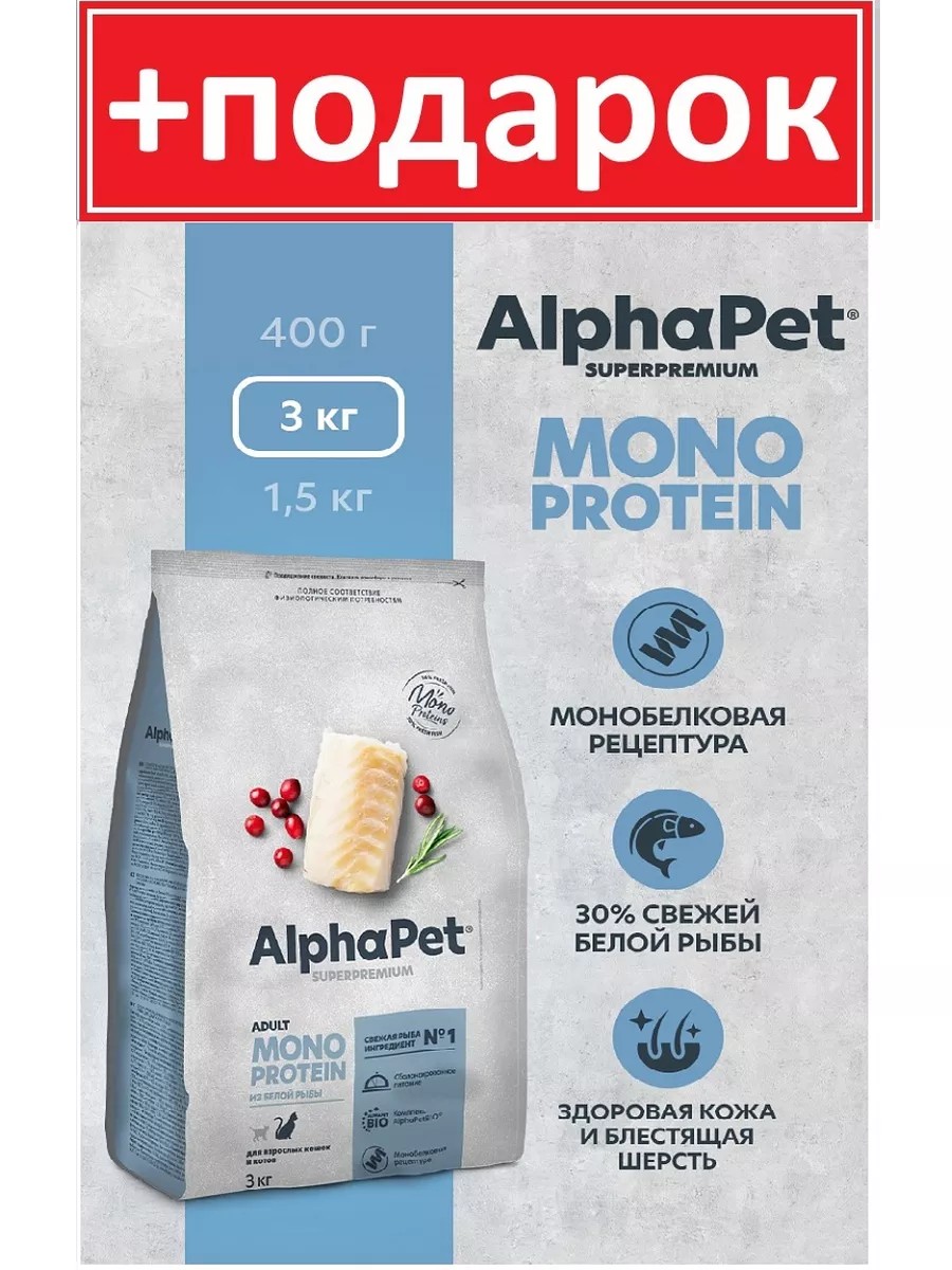 AlphaPet MONOPROTEIN для кошек из белой рыбы 3 кг