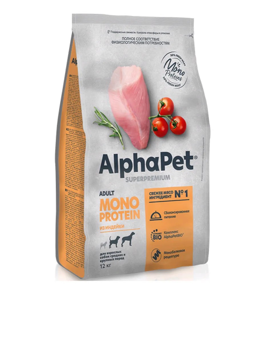 AlphaPet MONOPROTEIN для собак средних и крупных пород из Индейки 12к