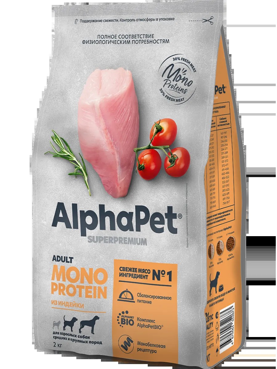 AlphaPet MONOPROTEIN для собак средних и крупных пород из Индейки 2кг