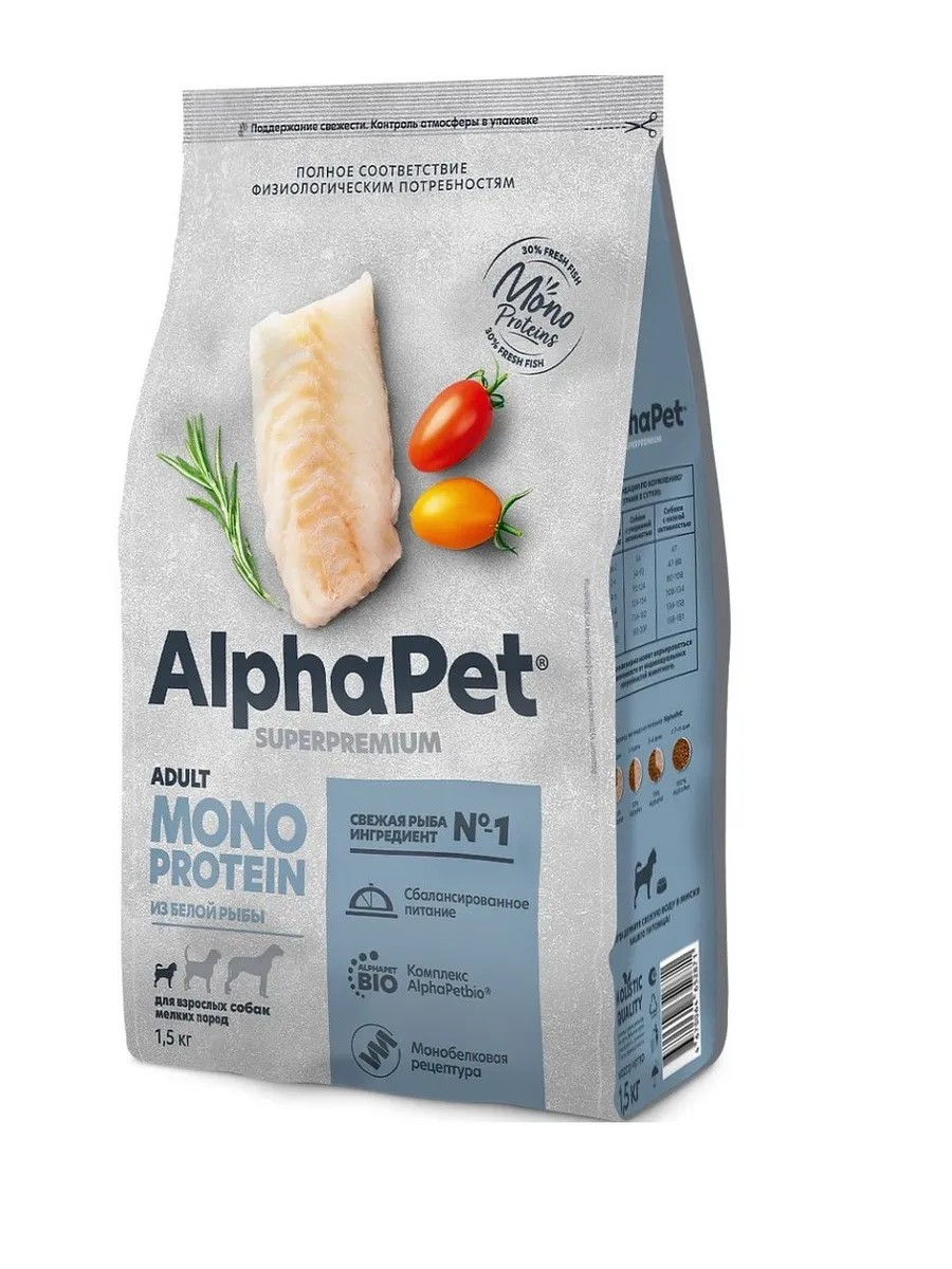 AlphaPet MONOPROTEIN для собак мелких пород из Белой рыбы 1,5кг