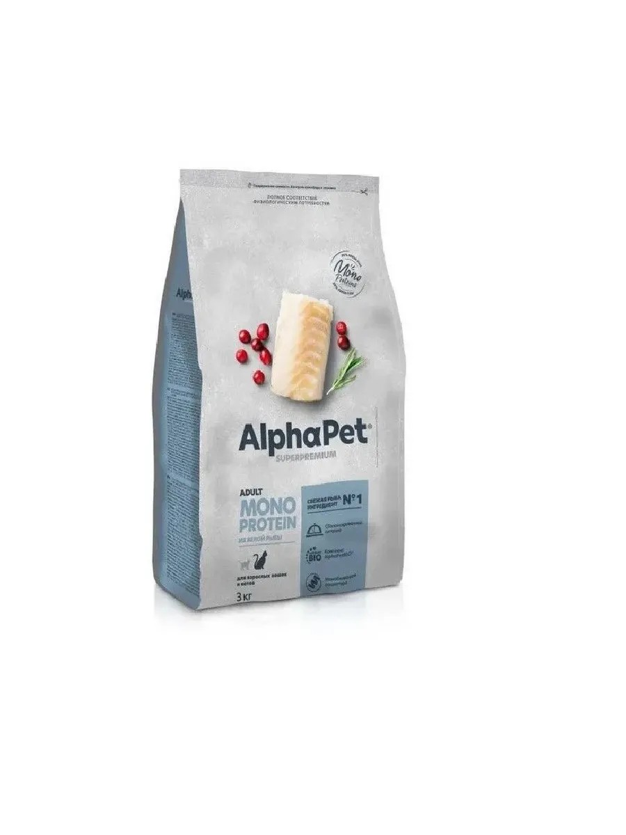 AlphaPet MONOPROTEIN взрослым кошкам с Белой рыбой 3кг