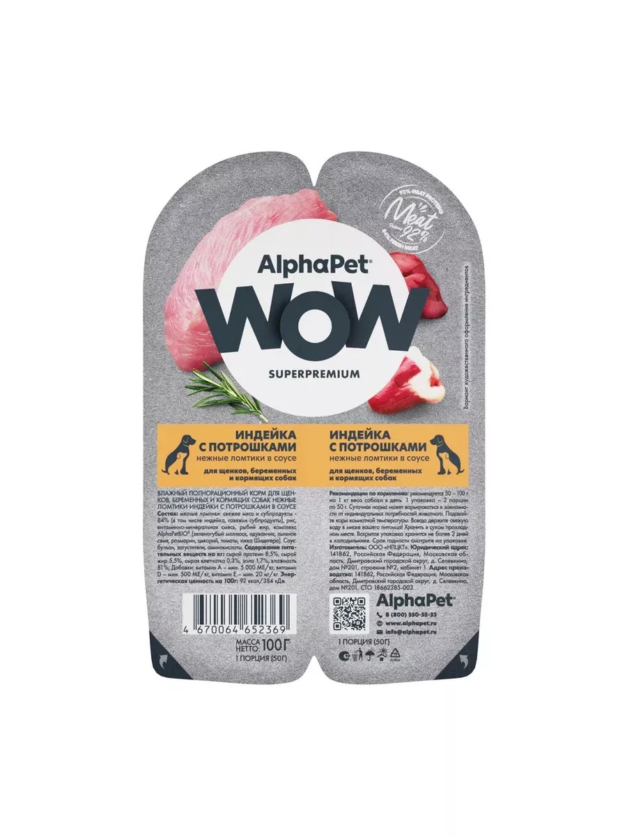 Здоровый и активный питомец - главная задача каждого хозяина. Команда AlphaPet создает и производит полезные корма высшей категории качества Holistiс, давая возможность каждому владельцу быть уверенным в правильном выборе кормления для своего животного. AlphaPet WOW - линейка качественного питания по доступной цене для животных, владельцы которых хотят быть уверены в выборе лучшего качества рациона по разумной цене. Максимально открытый и понятный состав кормов, приготовленных по инновационной технологии из свежего мяса и с содержанием более чем 90% мясного белка!