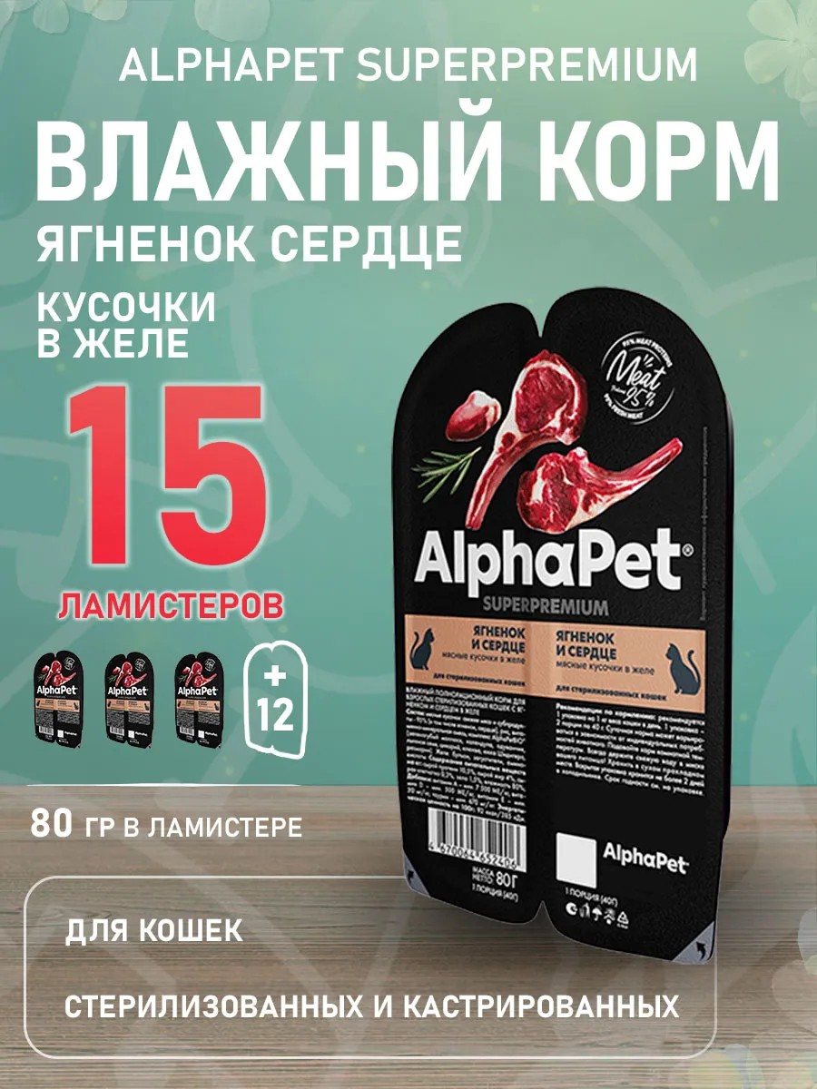 AlphaPet Корм для кошек стерилизованных влажный ягненок 80 г 15 шт