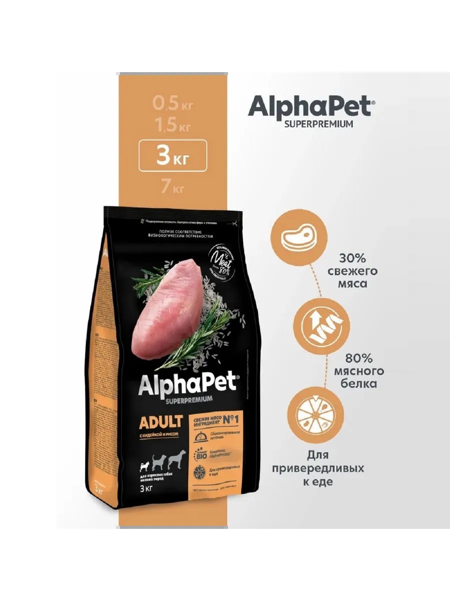 AlphaPet SUPERPREMIUM корм для собак мелких пород Индейка, рис 3кг