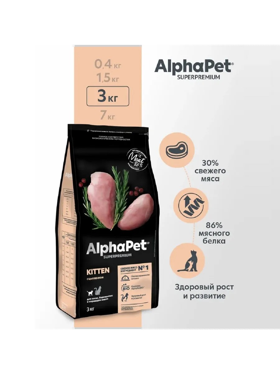 AlphaPet SUPERPREMIUM корм для котят, беременных кошек Цыпленок 3кг