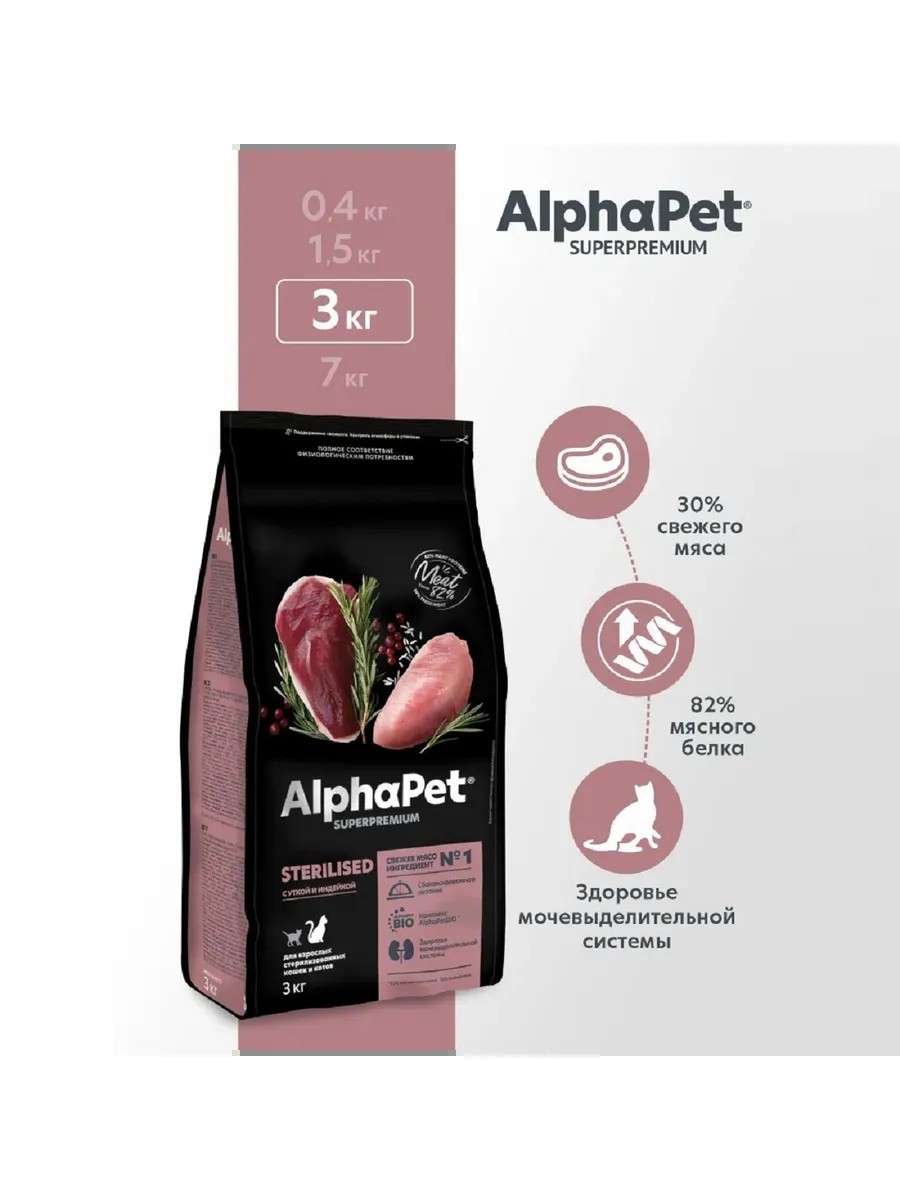AlphaPet SUPERPREMIUM корм для стерилизованных кошек Утка, индейка3кг