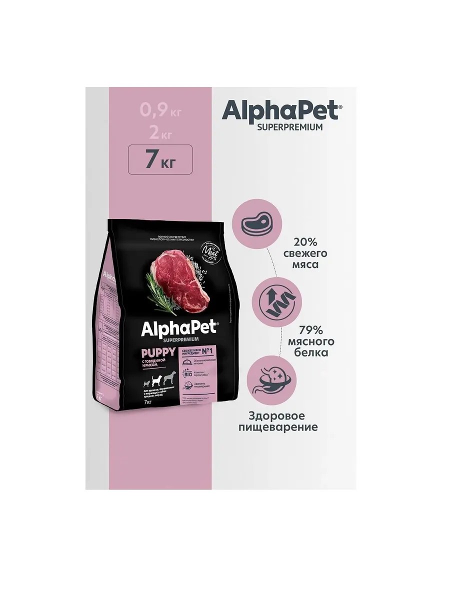 AlphaPet Корм SUPERPREMIUM щенкам средних пород говядина рис 7кг