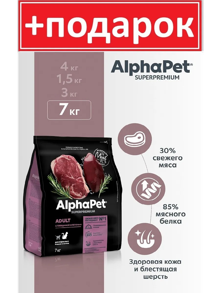 AlphaPet SUPERPREMIUM для кошек с говядиной и печенью 7 кг