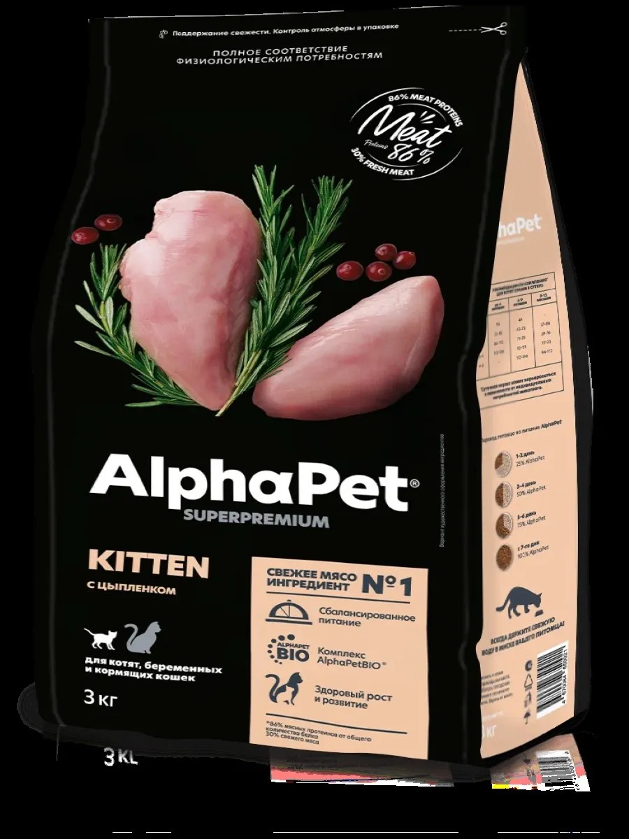 AlphaPet SUPERPREMIUM для котят и кошек с цыпленком 3 кг