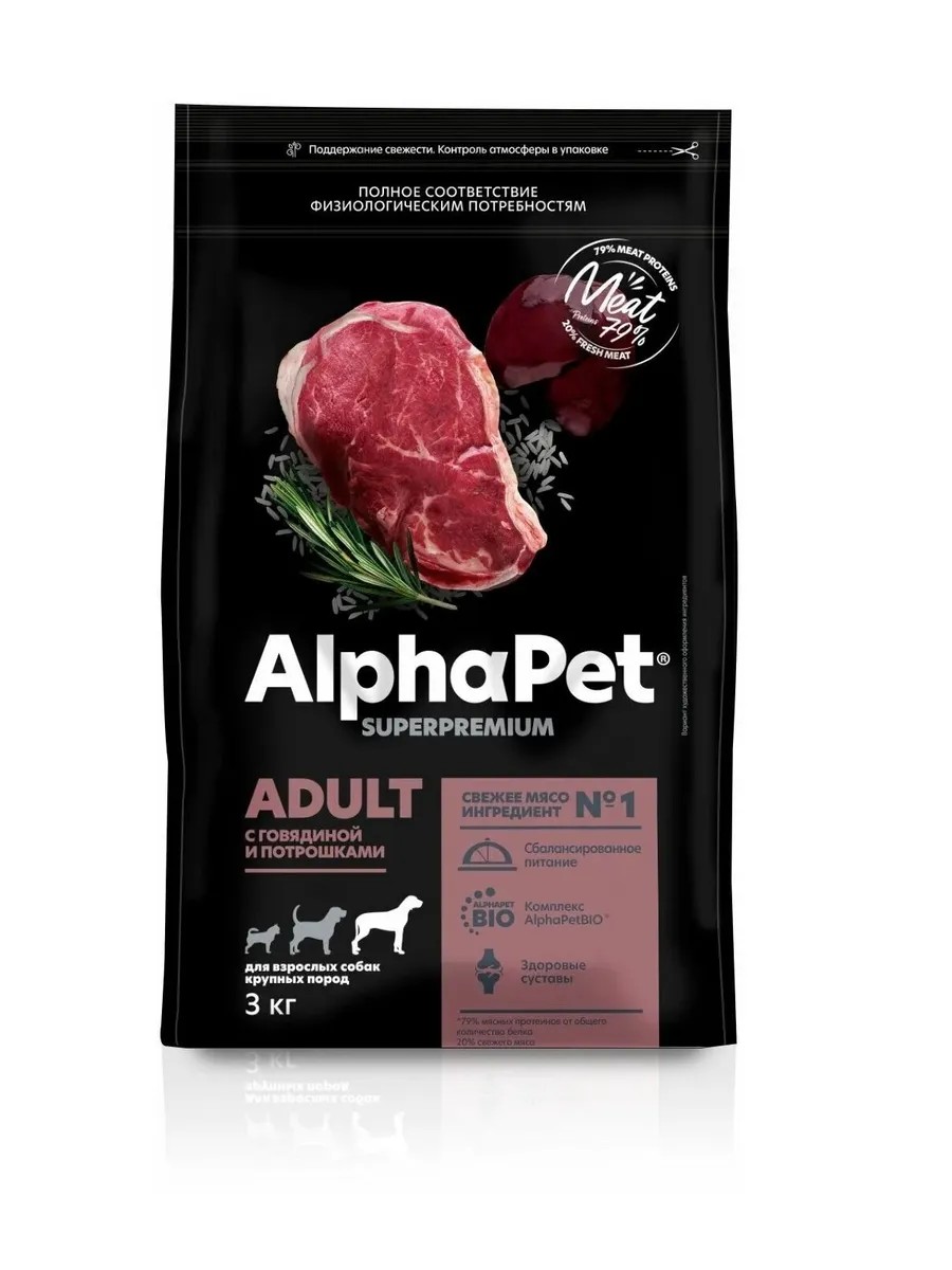 AlphaPet SUPERPREMIUM для крупных пород говядина и потрошки 3 кг