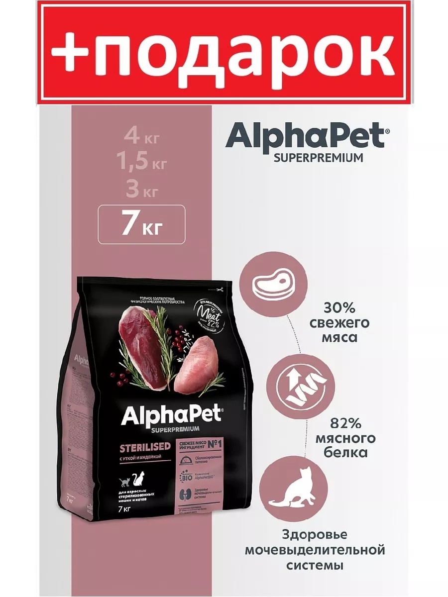 AlphaPet SUPERPREMIUM для стерилизованных кошек с уткой 7 кг
