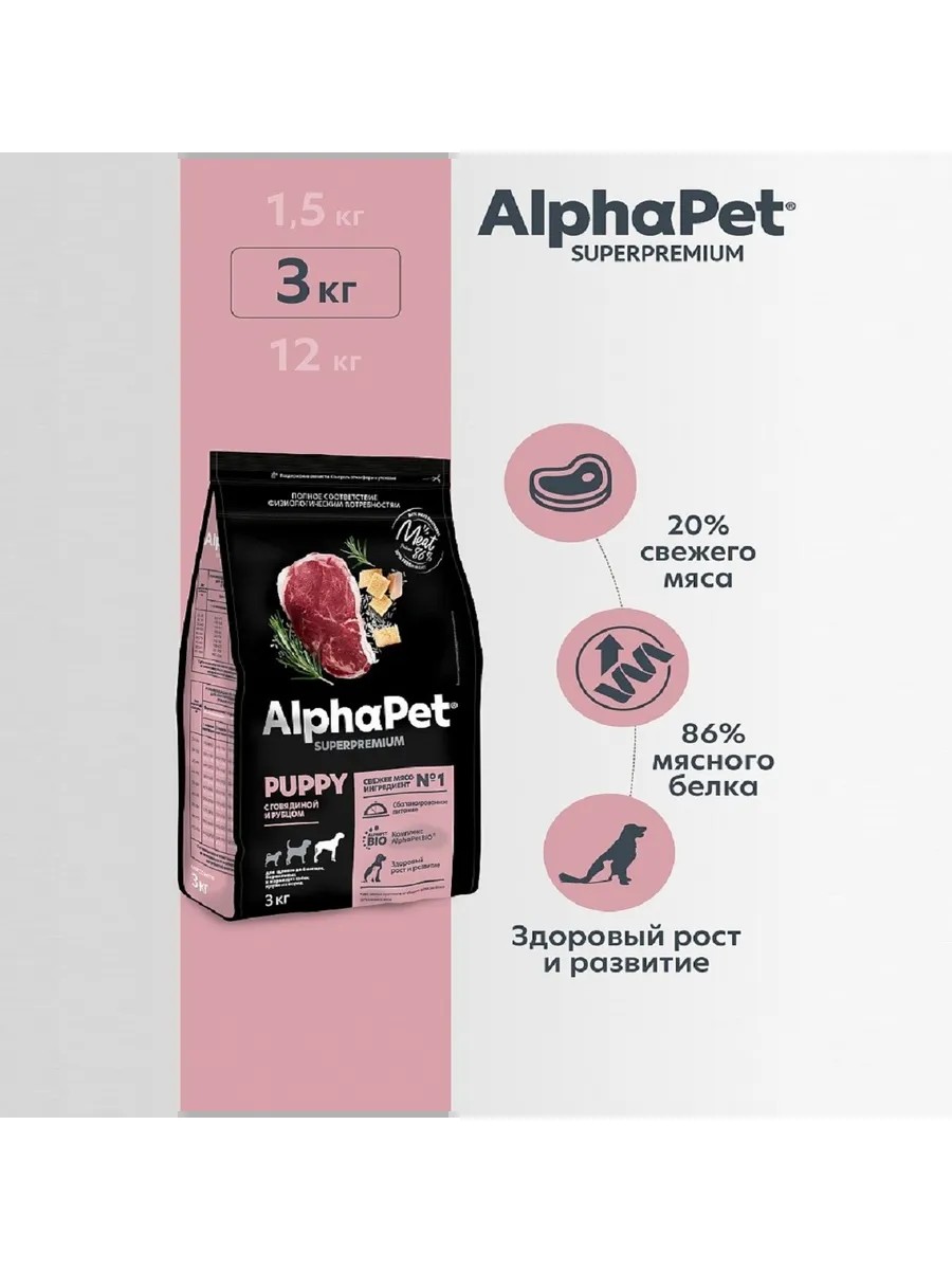AlphaPet SUPERPREMIUM крупным щенкам до полугода Говядина, рубец 3кг