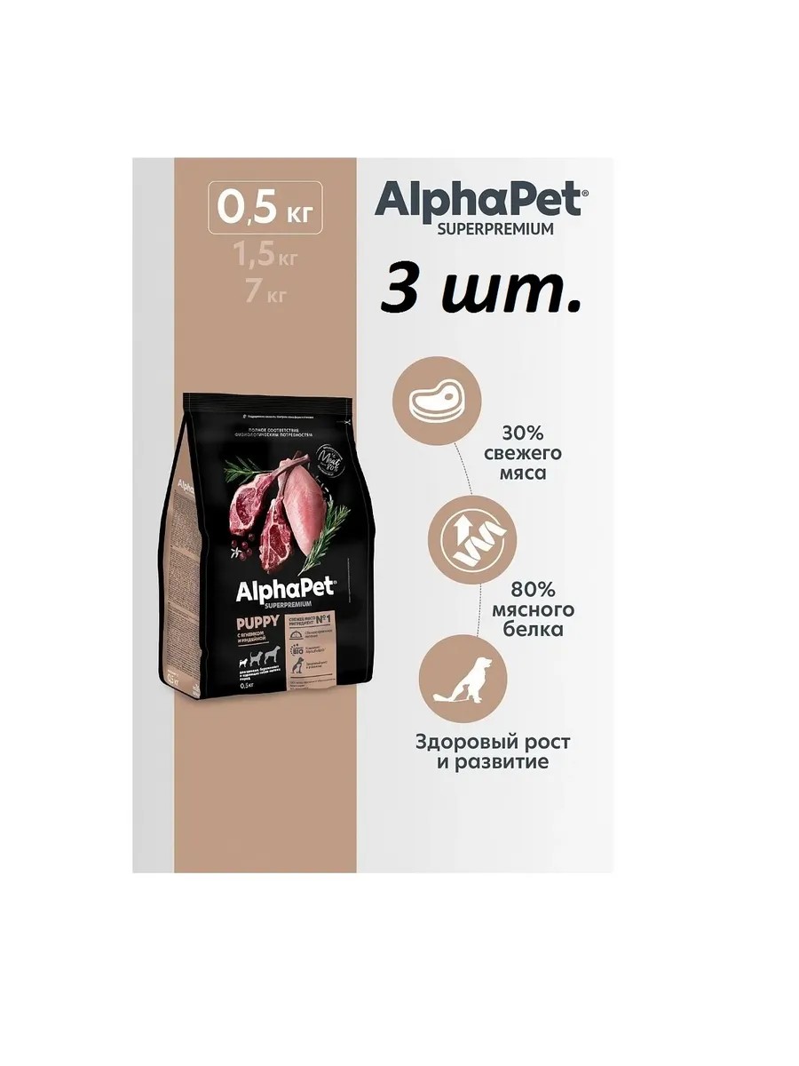 AlphaPet SUPERPREMIUM щенки мелких пород ягненок индейка 500гр. 3 шт.