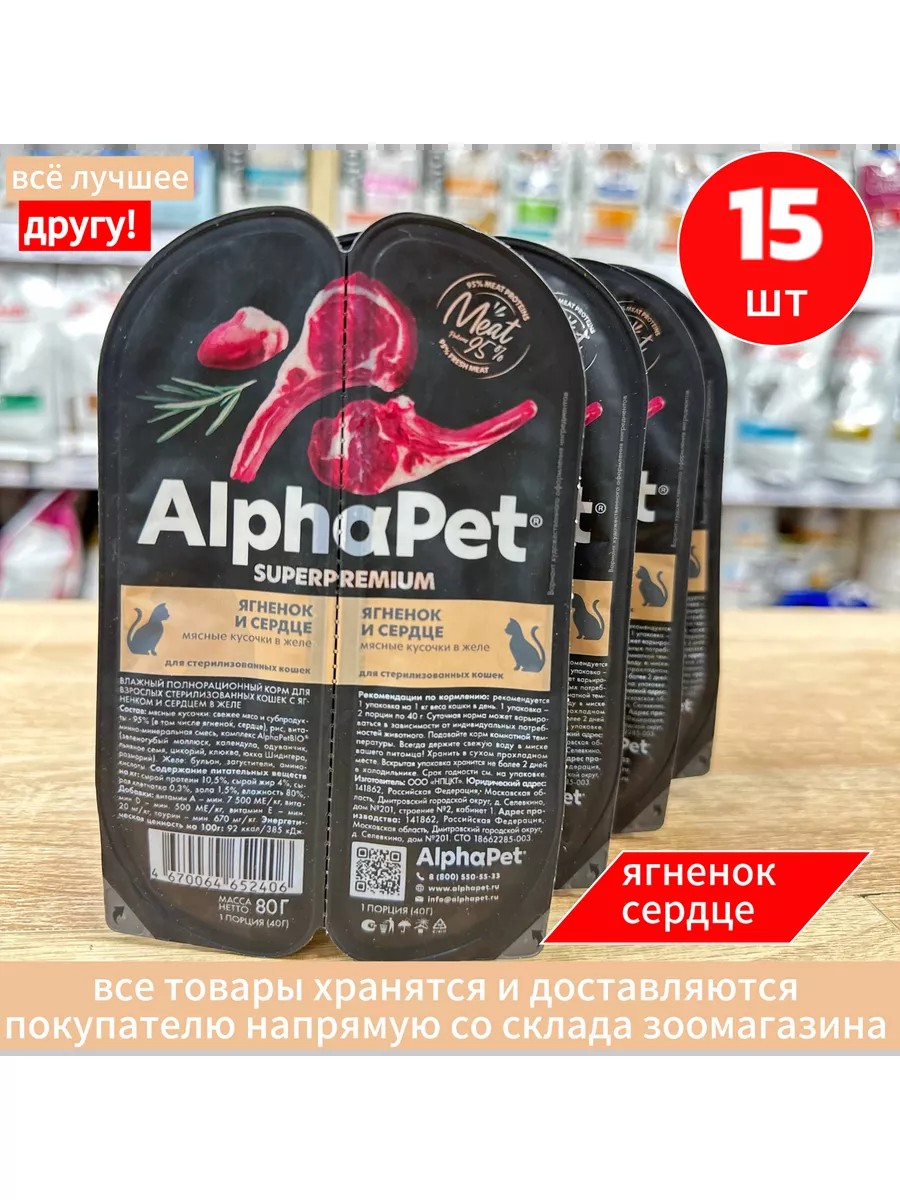 AlphaPet Корм влажный Альфапет для стерилизованных кошек Ягненок 15шт