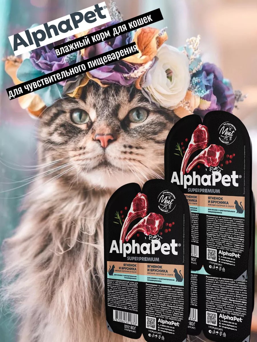 AlphaPet корм влажный для кошек ягненок и брусника 3 шт