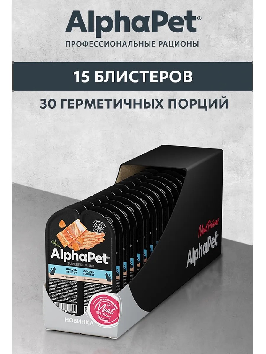 AlphaPet Влажный корм для взрослых кошек паштет с лососем 15шт х 85г