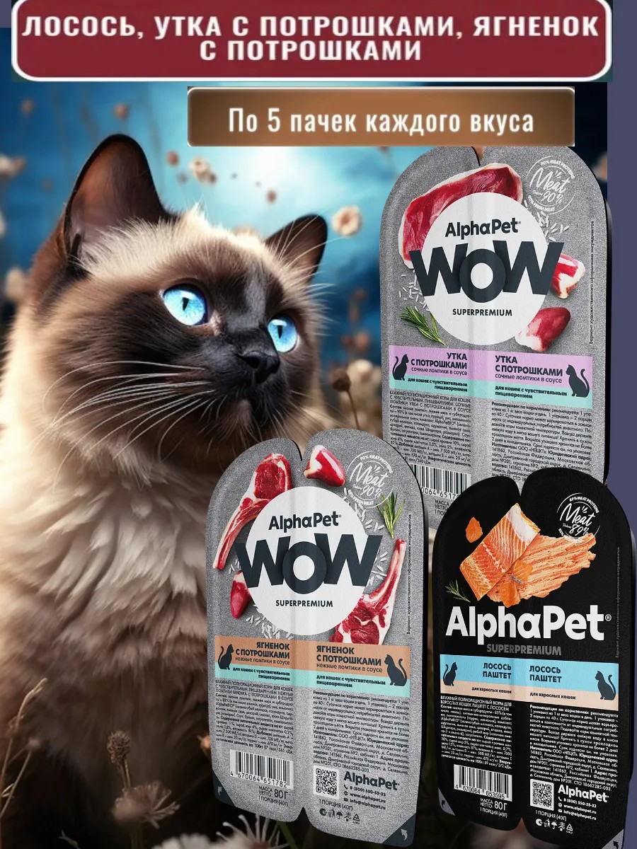 AlphaPet Влажный корм для кошек утка, ягненок, лосось