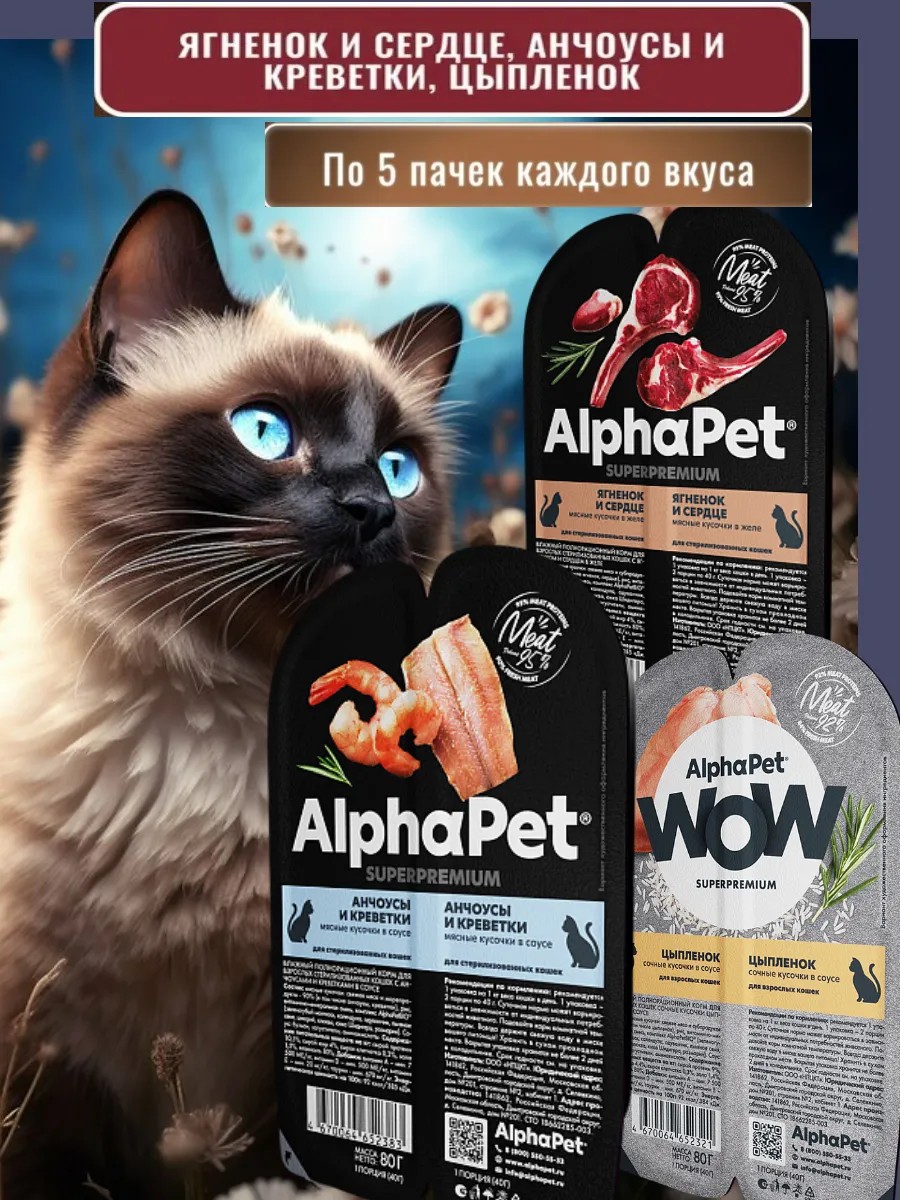 AlphaPet Влажный корм для кошек ягненок и сердце, анчоусы, цыпленок