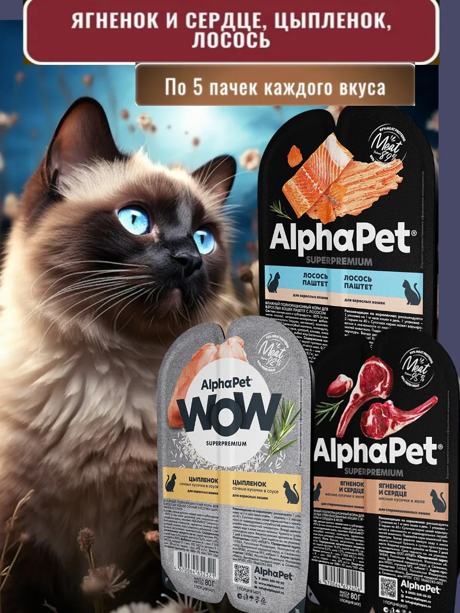 AlphaPet Влажный корм для кошек лосось, цыпленок, ягненок и сердце