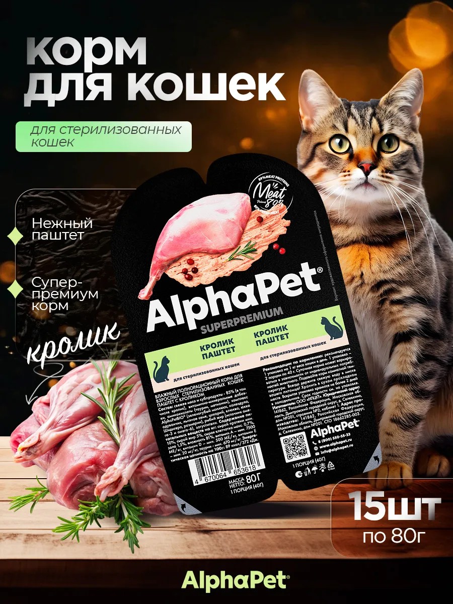 AlphaPet Wet food for cats Sterilized with a rabbit 15*80 g