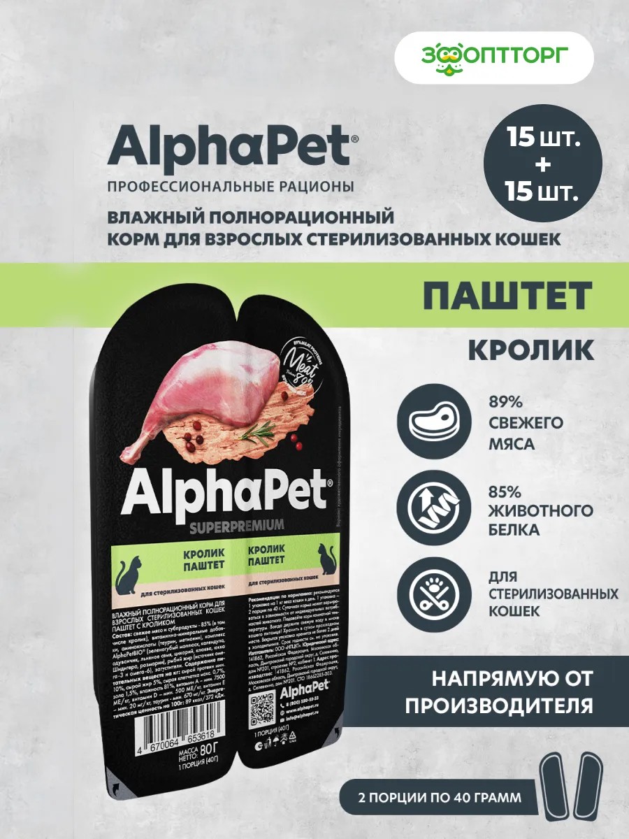 | Complete set | AlphaPet Superpremium pouch for adult sterilized cats (pate) Rabbit, 80 g - 30 pcs. |