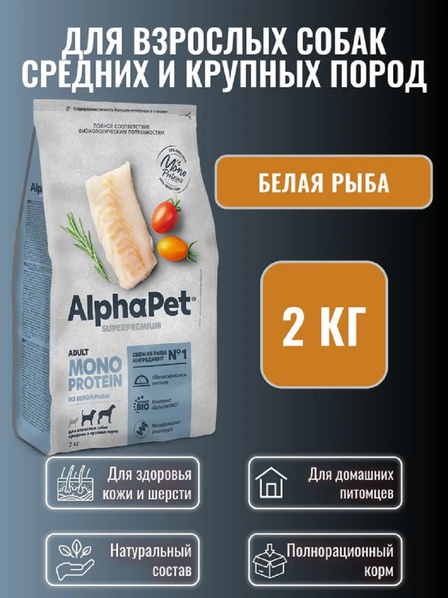 AlphaPet Корм из белой рыбы для собак средних/крупных пород 2кг