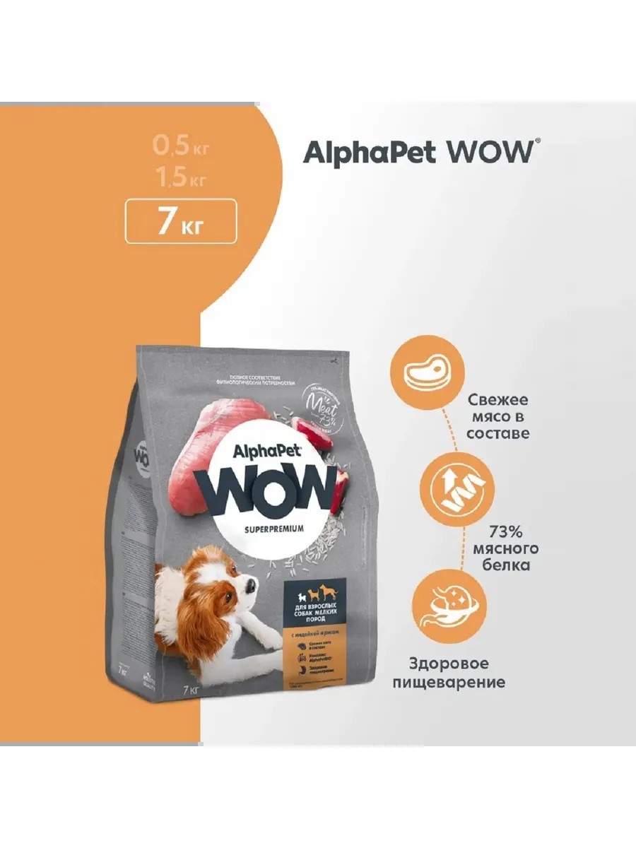 AlphaPet WOW корм сухой для взрослых мелких собак Индейка и рис 7кг