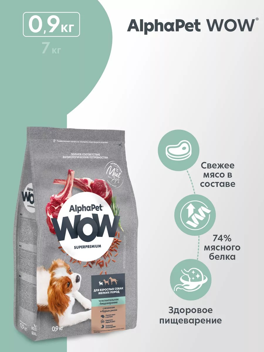 AlphaPet WOW Сухой корм для собак мелких пород с ягн и бурым рисом 0,9 кг