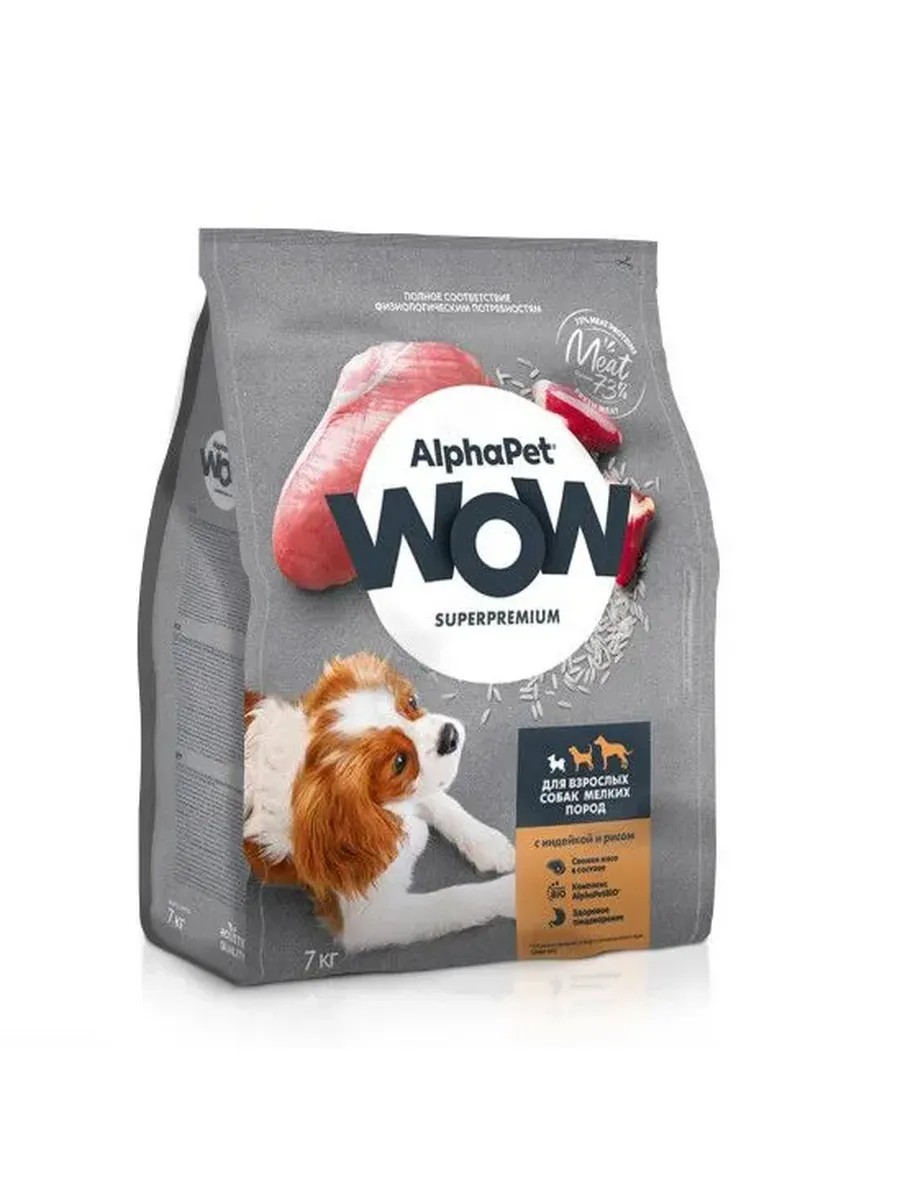 AlphaPet Корм WOW для взрослых собак мелких пород Индейка и рис 7кг