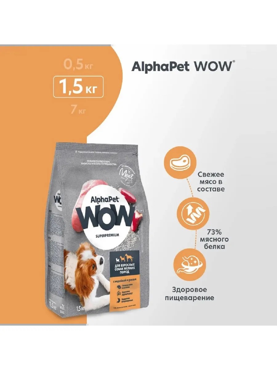 AlphaPet WOW корм для собак мелких пород с Индейкой и рисом 1,5кг