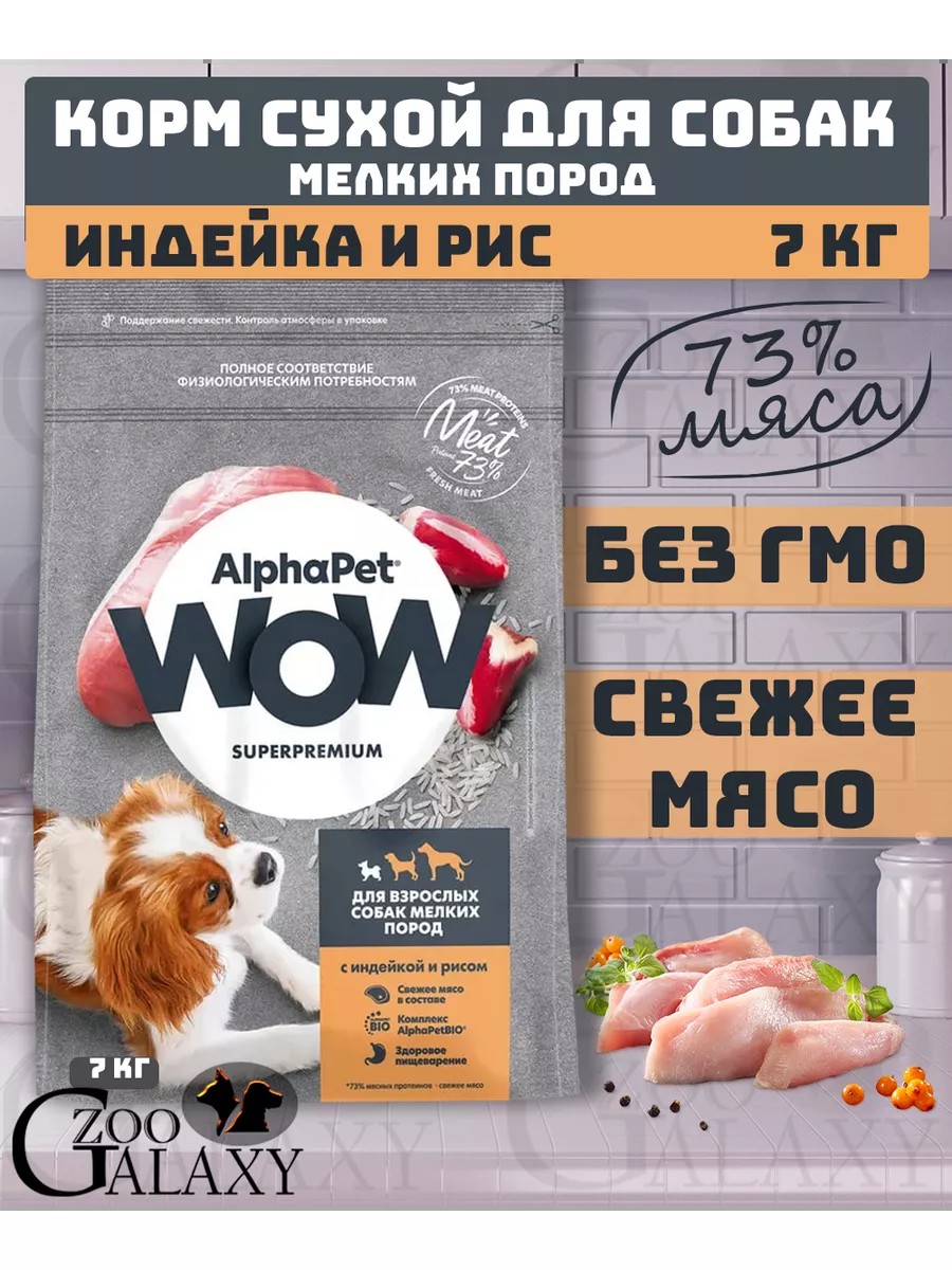 ALPHAPET WOW Корм для мелких собак индейка и рис 7 кг