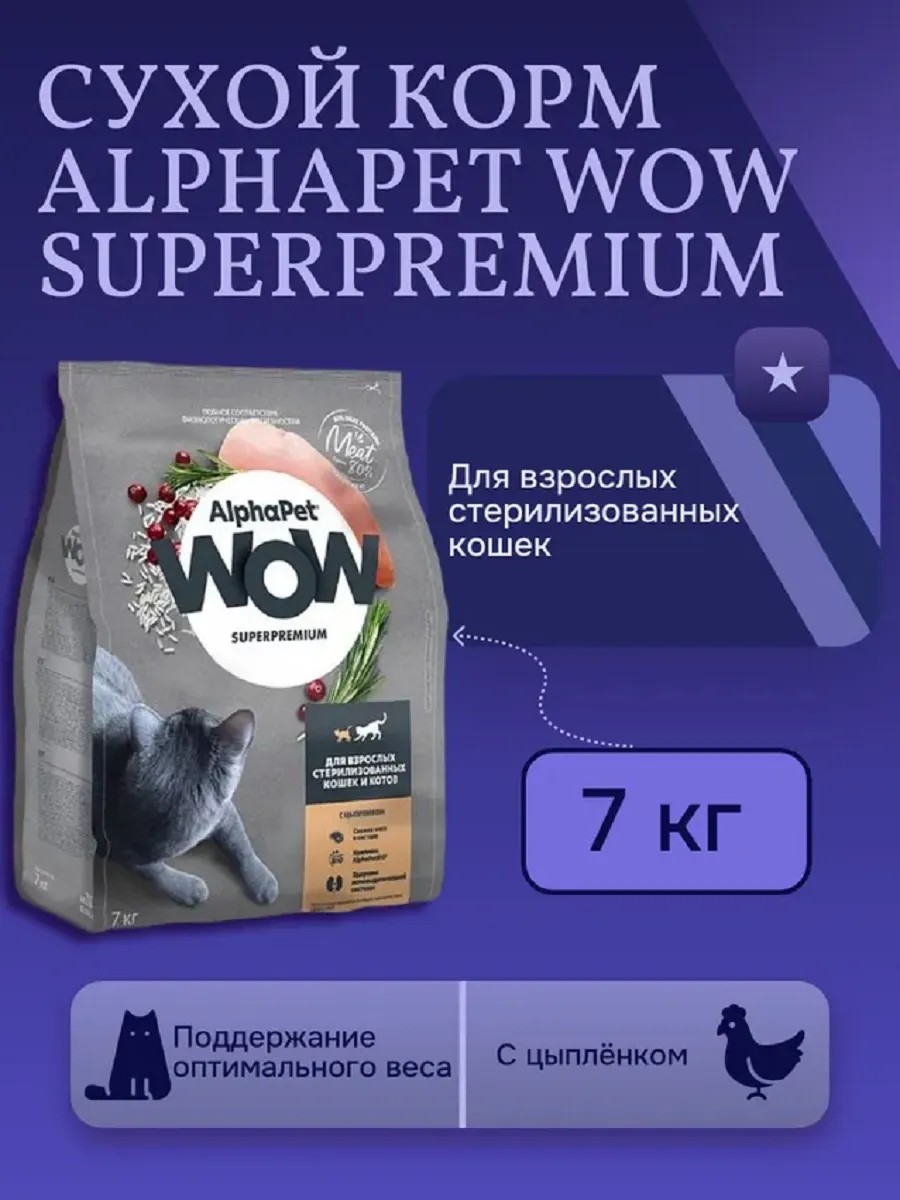 AlphaPet Корм WOW с цыпленком д/стерилиз.кошек 7кг
